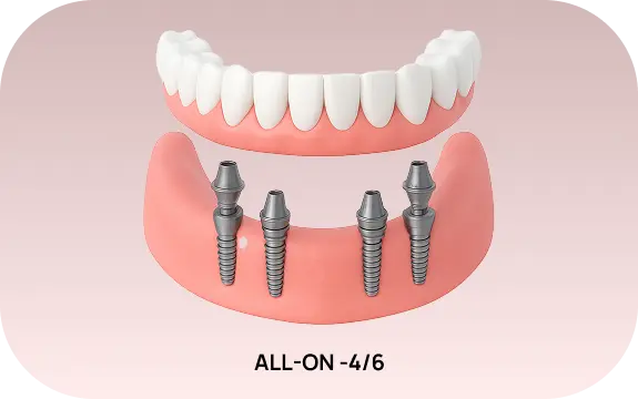 Стоимость такого пакета зависит от количества устанавливаемых имплантов и выбранных материалов и начинается от 2500 белорусских рублей за один зуб.